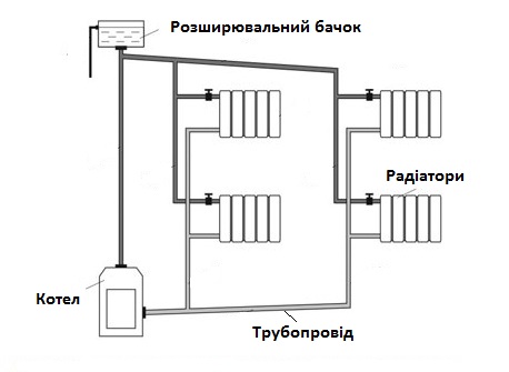 Схема відкритої системи водяного опалення